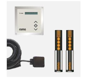 Funksteuerungspaket IF2 mit TS 600, Slider Handsender (4-Kanal, Edelstahl), Funkcodierschaltgerät (10-Kanal) und Schlüsselschalter; Farbausführung über die ROMA Farb-Harmonie (Oberflächen „matt glatt“/„matt Feinstruktur“, weitere Farben auf Wunsch). (Herstellerangaben aus bereitgestellten Unterlagen.)