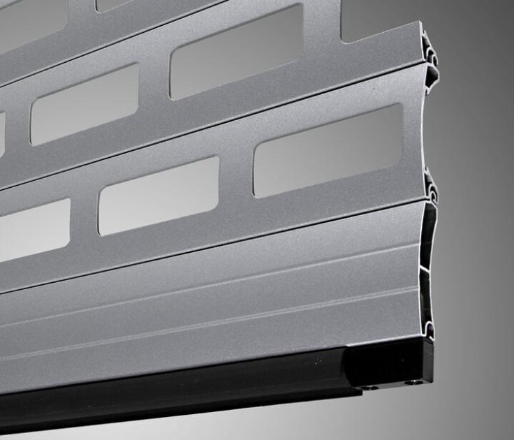 Der Torpanzer wird senkrecht auf eine Welle aufgewickelt und beim Blendkappensystem im Aluminiumkasten geschützt. ROLENTO ist für Innen- oder Außenmontage ausgelegt.