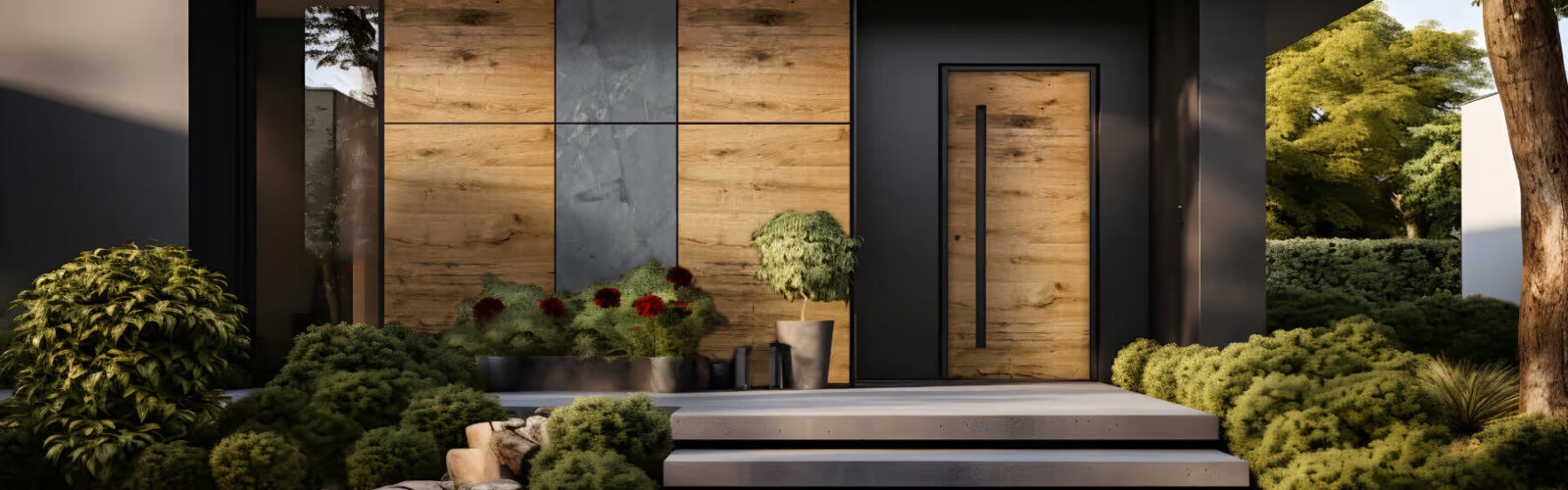 Die Haustüren verbinden authentische Materialien mit modernen Gestaltungselementen. So entsteht ein harmonisches Zusammenspiel aus Natur und Architektur – ganz nach Ihrem Stil.