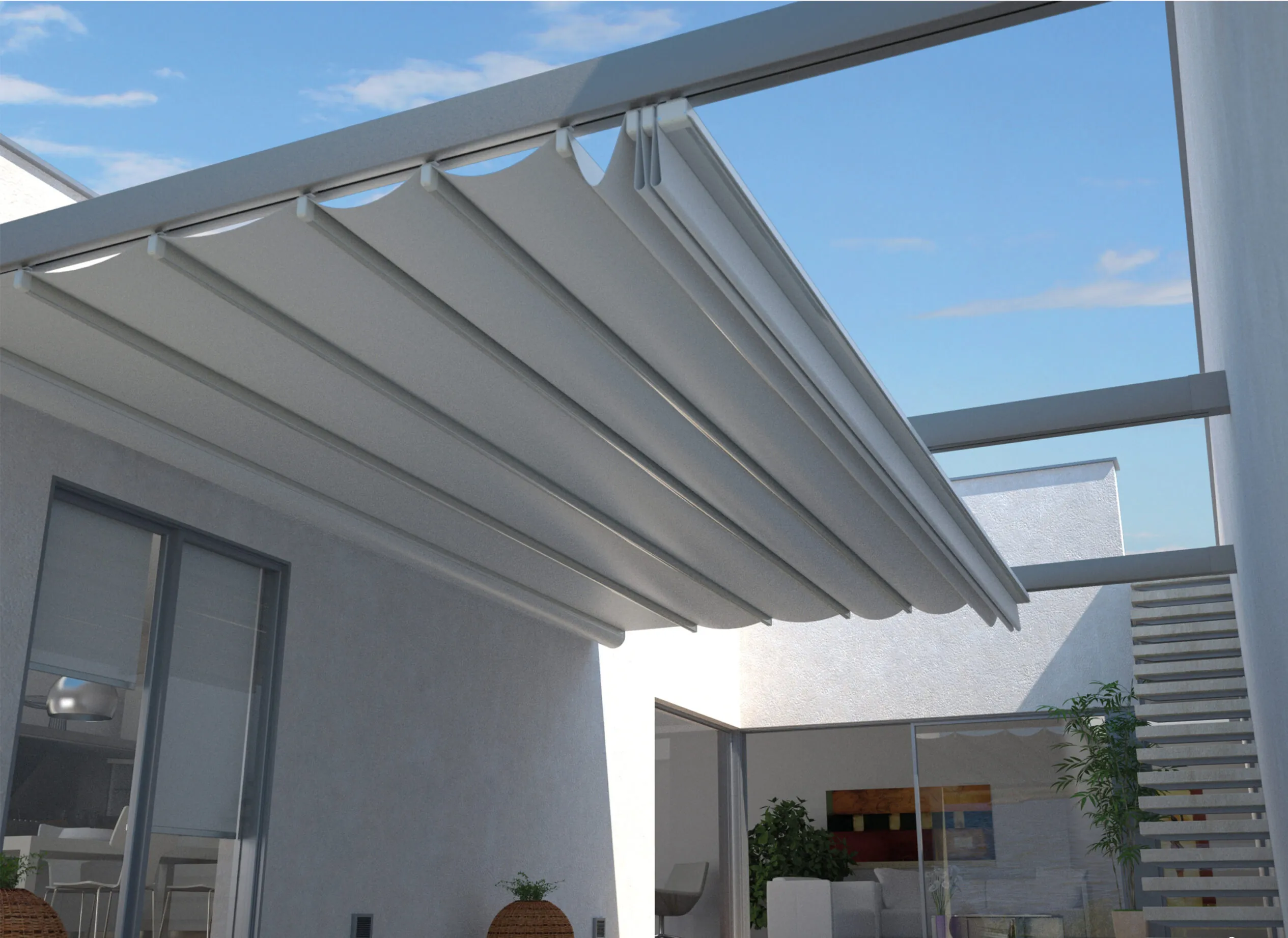 Du kannst die One Abdeckung mit LED-Beleuchtung ausstatten, um zusätzlichen Komfort und eine angenehme Atmosphäre zu schaffen. Die widerstandsfähige Aluminiumstruktur bietet höchste Stabilität und Langlebigkeit. Dank der modularen Bauweise passt du die Abdeckung individuell an und deckst größere Flächen ab. Erlebe die perfekte Verbindung von Stil und Funktionalität und verwandle deinen Außenbereich in eine Oase des Wohlbefindens.