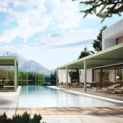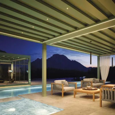 Die festen Lamellen der Carrera Pergola bieten zudem die Möglichkeit, hängende Elemente wie Kronleuchter, Heizungs- und Stereoanlagen zu integrieren. So kannst du deinen Außenbereich in eine luxuriöse und funktionale Wohlfühloase verwandeln.