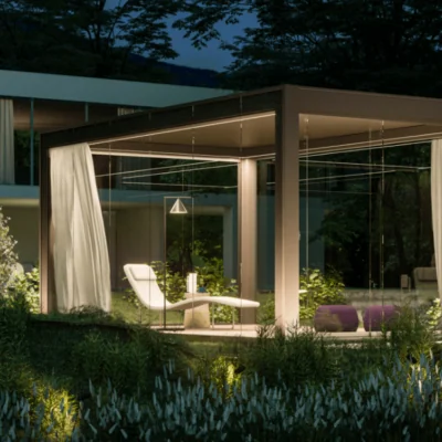 Die Connect Pergola bietet eine einzigartige Kombination aus offenem Lebensgefühl und absoluter Privatsphäre. Verstellbare Aluminiumlamellen und verspiegelte Wände schaffen einen exklusiven Raum, der sich harmonisch in jede Umgebung einfügt. Sie reguliert Licht, Wärme und Belüftung auf natürliche Weise und sorgt für ein angenehmes Klima zu jeder Tageszeit.