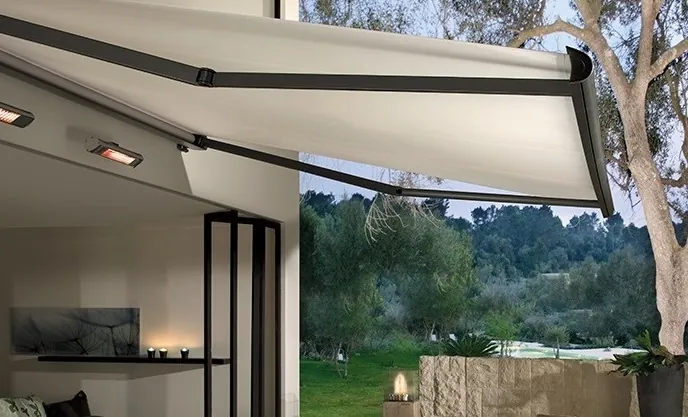 • Schlankes Kassettendesign: Die kompakte Bauweise schützt das Markisentuch und die Gelenkarme zuverlässig vor Witterungseinflüssen.