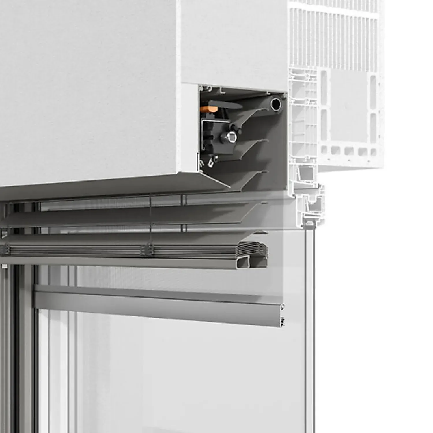 - Optional: Integrierter Insektenschutz – hochfahrbar, geschützt im Kasten, nachrüstbar